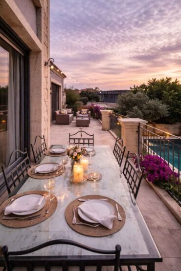 Villa Sunset, sade ama zarif dokunuşlarla hazırlanan organizasyonlar için samimi bir atmosfer sunar.