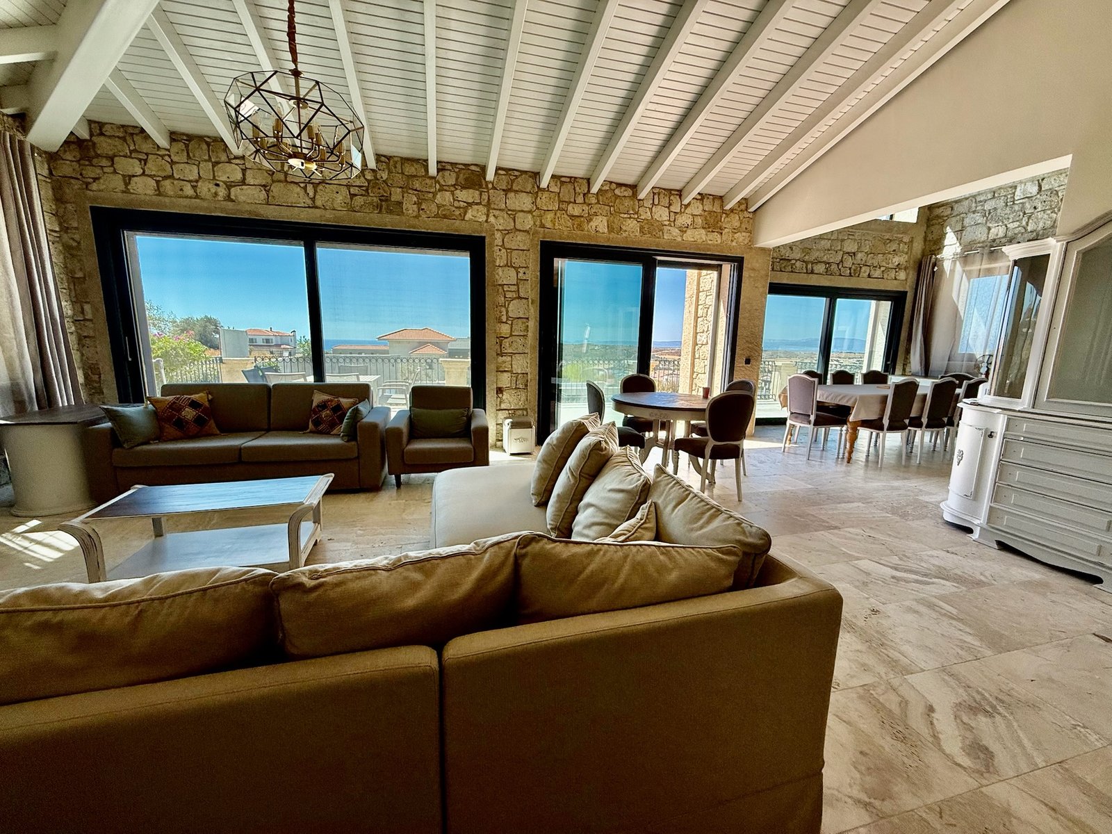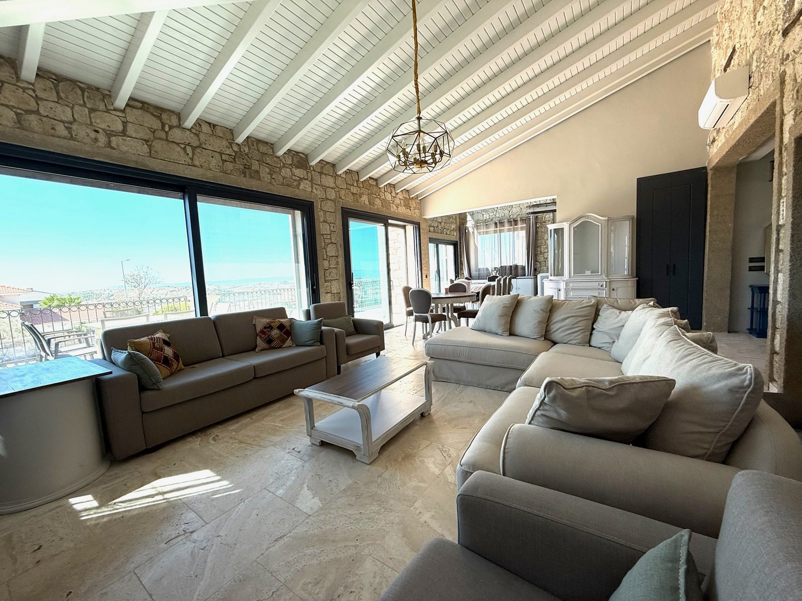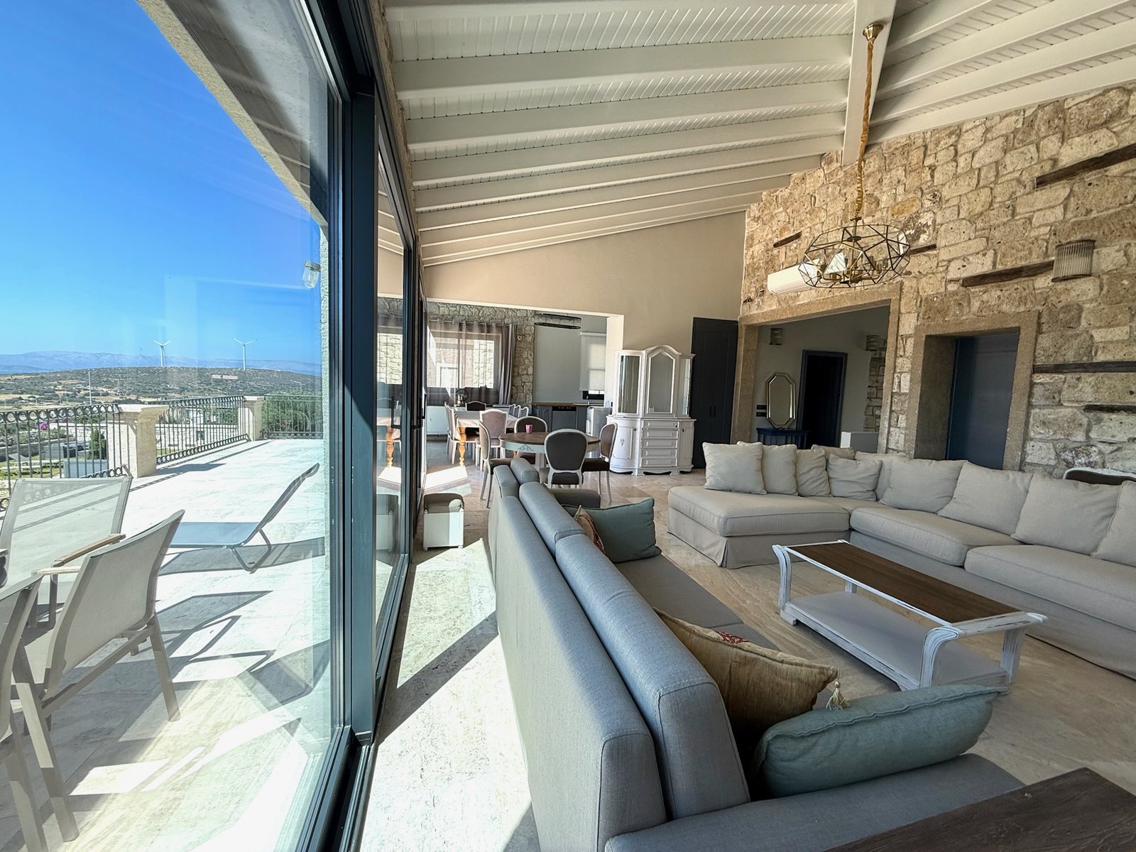 Zarif taş mimarisi, ferah yaşam alanları ve eşsiz manzarasıyla bu villa, Çeşme’de konforlu ve unutulmaz bir tatil için ideal bir seçenektir.