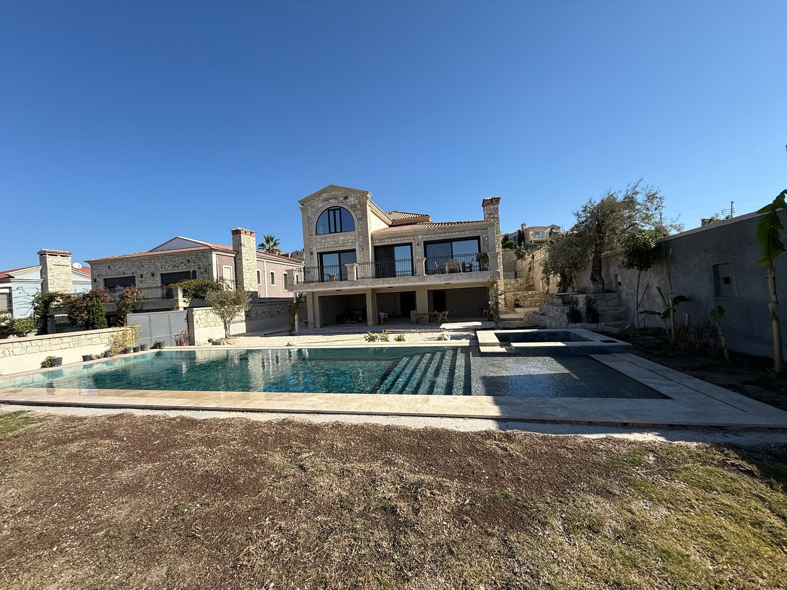 12×5 metre büyüklüğündeki özel yüzme havuzu, geniş bahçe alanı ve gün batımını izleyebileceğiniz teraslarıyla villa, sevdiklerinizle keyifli vakit geçirmeniz için tasarlanmıştır.